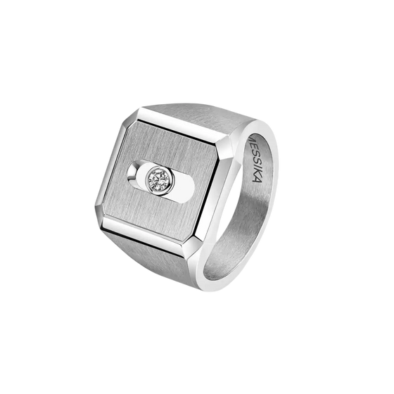 Technical Data Reference: Move Titanium Natural Signet Ring 13771-TN Universe: Jewelry Collection: Move Titanium Type of jewelry: Diamond ring Metal: Natural titanium Stones: Diamond Total diamond weight: 0.06 carat, G/VS quality Category: Men's ring This ring fits true to standard sizing. Please select your regular size. For more information, please see the size guide. All of the jewelry pieces in the Messika Jewelry collection are unique. The weight, size and carat weight of each piece can vary slightly from one creation to another.