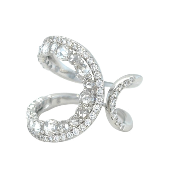 This white gold ring, adorned with dazzeling diamonds, is a unique creation. This exquisite piece of jewelry exudes a striking elegance, perfect for those seeking both luxury and bold sophistication.