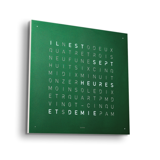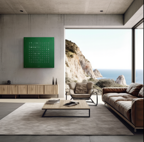 With its velvety surface, Qlocktwo Green Velvet exudes warmth and creates a new feeling of space thanks to the different reflections of light. Its sober, elegant appearance is an absolute eye-catcher and stimulates several senses at once. Thanks to its velvety, refined green surface, the object becomes a visual and tactile highlight in any room, creating an original combination of design and functionality.