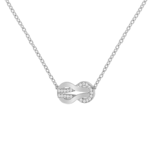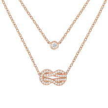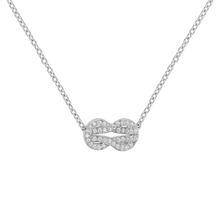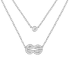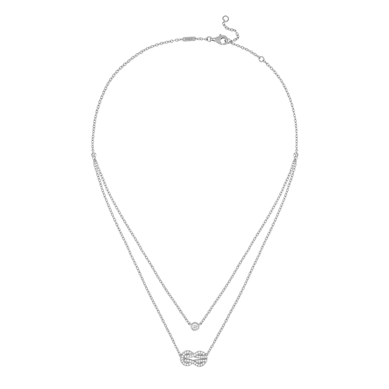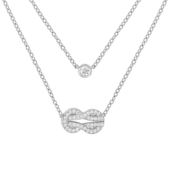 Photographie Retouchée Collier Chance Infinie double chaine moyen modèle en or blanc pavé de diamants et un diamant serti-clos.