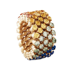 Une bague ou un bracelet ? Un bracelet ou une bague ? Grâce à Serafino Consoli, plus besoin de choisir ! Son mécanisme innovant, conçu et développé exclusivement pour l'entreprise, permet de transformer une bague en bracelet d’un simple geste ! De l'or jaune, blanc et rose de dix-huit carats ainsi que des diamants blancs, bruns ou noirs, des rubis, des saphirs ou encore des tsavorites sont combinés avec technique et haute précision. Un chef d’œuvre de joaillerie à l'âme unique qui fait de la polyvalence son point fort.