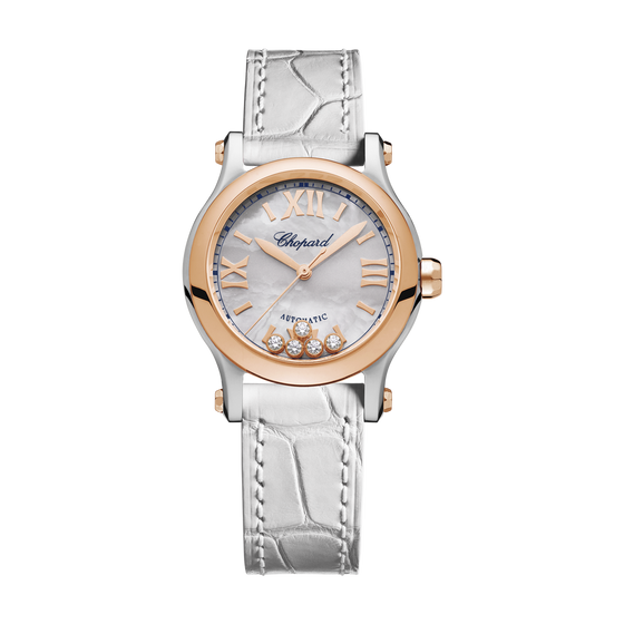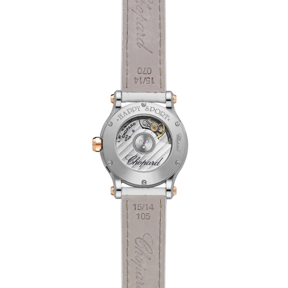 La collection Happy Sport est l’emblème même de la créativité et de l’audace de Chopard. Ses pierres précieuses enjouées, dansant entre deux glaces saphirs, font rêver depuis 1993, date à laquelle Chopard est devenue la première Maison à associer l’acier et les diamants. Grâce à son expertise horlogère, Chopard a doté la Happy Sport 30 mm d’un mouvement mécanique à remontage automatique développé spécialement pour les boîtes féminines. Little Diamonds Do Great Things