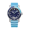 Boîtier et cadran Métal: acier inoxydable Diamètre de la boîte: 40 Epaisseur: 14.21 mm Diamants blancs (ct): 0.24 Cadran: Bleu Étanchéité: 300 mètres Materiau de la couronne: acier inoxydable Type de couronne: vissée Glace: saphir traitée antireflet et anti-rayure