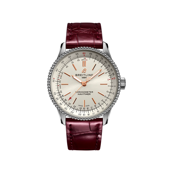 Raffinée et élégante, la Navitimer Automatic 35 allie le charme historique d’une véritable icône à la sophistication d’un garde-temps contemporain. Disponible dans un large éventail de matières, acier inoxydable et or rouge 18 carats inclus, le boîtier de 35 mm est équipé d’une lunette perlée et de toute une série d’élégants cadrans colorés ainsi qu’en nacre blanche sertie de diamants. Proposée avec un bracelet correspondant, ou avec un bracelet en cuir d’alligator assorti aussi bien à une boucle ardillon en acier inoxydable que déployante, la Navitimer Automatic 35 est animée par le Calibre Breitling 17, un chronomètre certifié COSC.