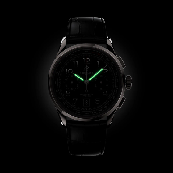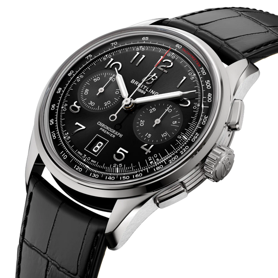 Au début des années 1940, Willy Breitling rêve déjà d’une période d’après-guerre où l’utilité laisserait place à un optimisme effréné. Il commence à concevoir un chronographe qui se voudrait fonctionnel, mais aussi indéniablement élégant et infiniment facile à porter – selon ses propres termes, « la marque indéniable d’un goût irréprochable ». Il appelle cette nouvelle collection Premier. Pour créer sa collection moderne Premier, Breitling a conservé les signes distinctifs de l’ancienne collection, à savoir une lunette lisse fixe, un cadran à deux compteurs, des poussoirs rectangulaires épurés et les chiffres arabes. Le Premier B01 Chronograph 42 est disponible dans un large éventail de couleurs de cadran et de matériaux de boîtier. Il est proposé sur un bracelet en cuir d’alligator classique ou un bracelet élégant à 7 rangs en métal. Le modèle Premier actuel respecte également les normes techniques exigeantes de Willy Breitling avec son mouvement à remontage automatique exceptionnel – le calibre Manufacture Breitling 01 certifié COSC – conçu pour une précision, une fiabilité et une fonctionnalité maximales.