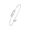 This 18 carat white gold pavé diamond bracelet, fully handcrafted is part of the Move luxury jewelry collection, the signature of Messika House. The radiance of the white gold enlightens the diamonds purity. With its three moving diamonds that shine according to one's movements, this Baby Move white gold pavé diamond bracelet suits the thin wrists. This diamond bracelet is the ideal everyday companion of a woman with its pared down graphic style and delicate chain, the talisman symbol of the love of yesterday, today and tomorrow. A chic detail: the adorning diamonds on the chain. Shop this white gold pavé diamond bracelet online or visit us in boutique to discover the whole Baby Move diamond bracelets collection.