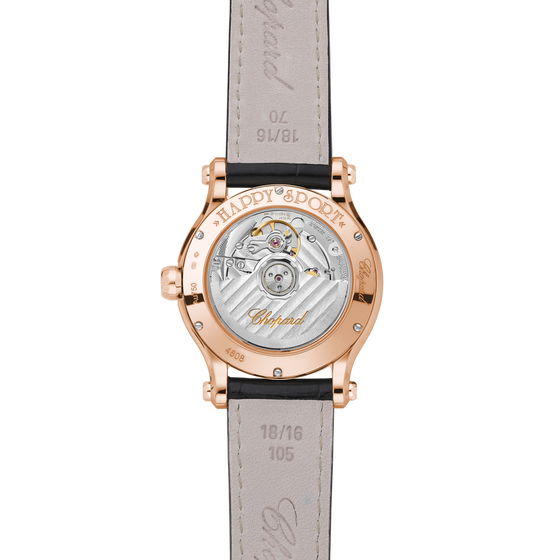 Case & Dial Metal: 18-carat ethical rose gold Case diameter: 36 Thickness: 12.15 mm Dial: Mother-of-pearl with guilloché centre Water-resistant: 30 metres Case-back: Front glass, See-through sapphire crystal Crown material: 18-carat ethical rose gold Front glass: Sapphire glass
