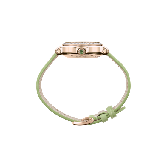 Case & Dial Metal: 18-carat ethical rose gold Case diameter: 30 Thickness: 11.23 mm Dial: Green textured mother-of-pearl Water-resistant: 30 metres Case-back: See-through sapphire crystal Crown material: 18-carat ethical rose gold Front glass: Sapphire glass