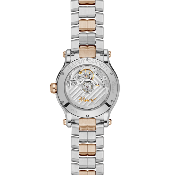 Case & Dial Metal: 18-carat ethical rose gold and stainless steel Case diameter: 36 Thickness: 12.15 mm Dial: Silver-coloured with guilloché centre Water-resistant: 30 metres Case-back: See-through sapphire crystal Crown material: 18-carat ethical rose gold Front glass: Sapphire glass