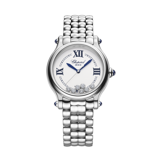 Happy Sport The First pays faithful tribute to the original model introduced in 1993, thanks to its legendary dancing diamonds and its pebble-link bracelet, while adding major innovations: a new case redesigned in a 33 mm diameter inspired by the principles of the golden ratio, as well as the self-winding Manufacture Chopard 09.01-C movement. Little Diamonds Do Great Things