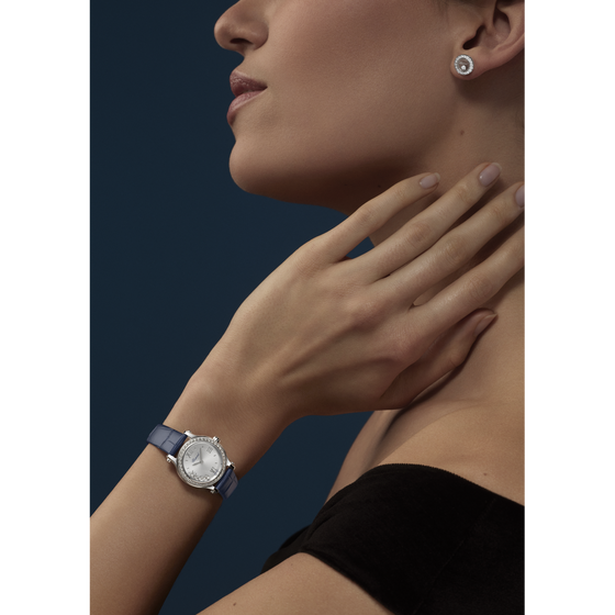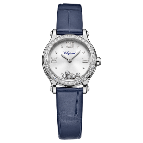 The Happy Sport women's floating diamond watch collection is the emblem of Chopard’s creativity and boldness. Dancing between two sapphire crystals, its playful, free-spinning diamonds have captured the imagination since 1993, when Chopard became the first Maison to combine steel and diamonds. Little Diamonds Do Great Things.