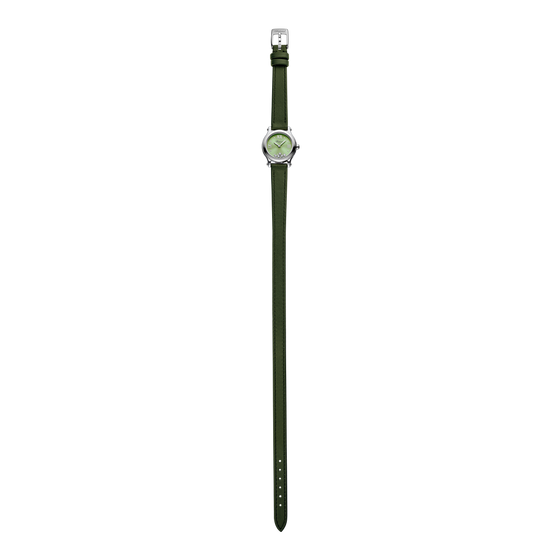 Strap & Buckle Buckle type: Pin buckle Buckle material: Stainless steel Strap: Luxurious green calfskin strap with matching stitching