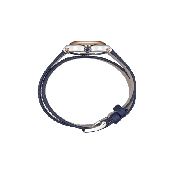 Case & Dial Metal: 18-carat ethical rose gold and stainless steel Case diameter: 25 Thickness: 8.74 mm Dial: Silver-coloured with satin-brushed sunburst finish Water-resistant: 30 metres Crown material: 18-carat ethical rose gold Front glass: Sapphire glass
