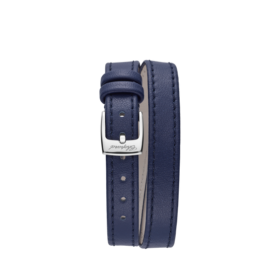 Strap & Buckle Buckle type: Pin buckle Buckle material: Stainless steel Strap: Calfskin blue strap with matching stitching