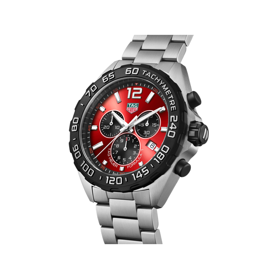 A symphony of red and steel, this TAG Heuer Formula 1 watch channels the audacious spirit of racing. With its vibrant sunray brushed red dial, this distinctive timepiece is crafted to dominate the track. A nod to speed-driven mavericks.