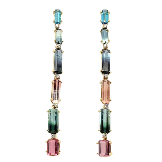 These rose gold earrings, adorned with dazzeling multicolored tourmalines, are unique creations. These exquisite pieces of jewelry exude a striking elegance, perfect for those seeking both luxury and bold sophistication.