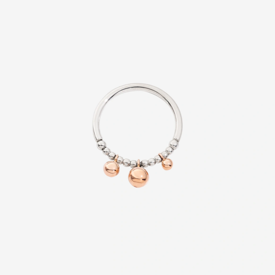 Bollicine ring in sterling silver with 9K rose gold and sterling silver spheres.