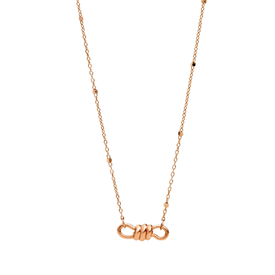 Necklace in 9K rose gold with mini Nodo charm in 9K rose gold, plaquette in 9K rose gold.