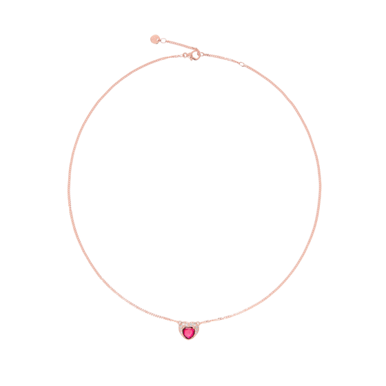 Heart Necklace in 9K rose gold with 1 synthetic ruby (ct 0.6) and 10 white diamonds (ct 0.11)
