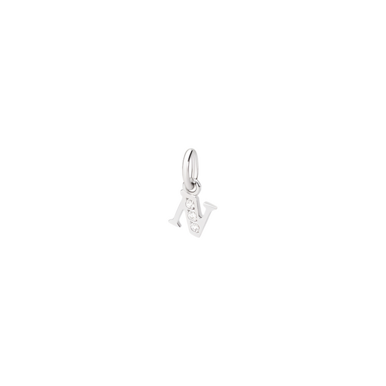 Letter N pendant in 18K rhodium plated white gold with 3 diamonds (0.025 ct) - small model. Black cord included.