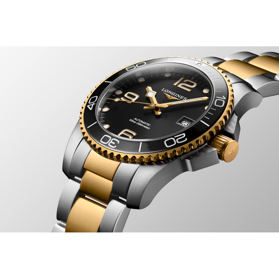 Inspired by the world of water sports, the HydroConquest collection stands out with its daring design. Water-resistant up to 30 bar (300 m) with a unidirectional rotating bezel and screw-down crown and case back, it guarantees exceptional reliability at all times.