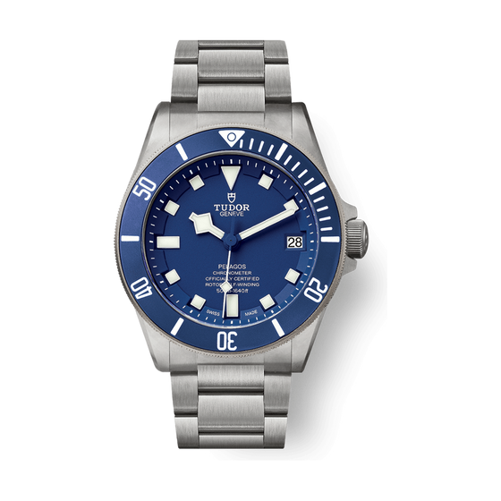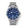 Unidirectional rotatable bezel in titanium, graduated over 60 minutes with ceramic matt blue disc and graduations with white luminescent material