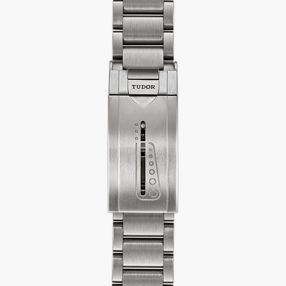 Titanium bracelet with folding clasp and safety catch in steel with bracelet extension system developed and patented by TUDOR
