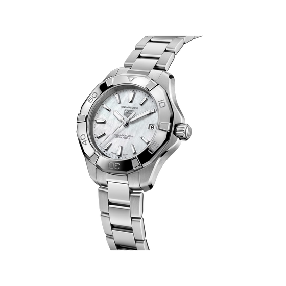 Immerse yourself in the celestial allure of the northern lights with this TAG Heuer Aquaracer, equipped with our Solargraph movement. Designed as an elegant yet resilient timepiece for the modern explorer, this sumptuous 34 mm watch is your go-to companion for rugged adventures and urban sophistication.